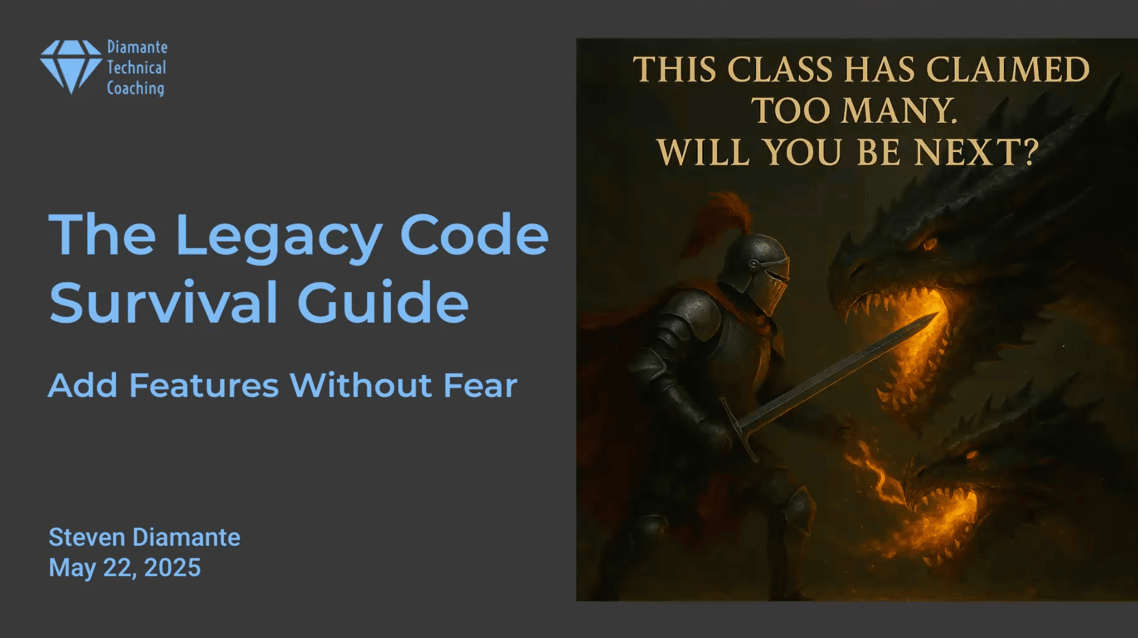 Hello Reader 👋 I hope you are doing well today! A few months ago, Steven Diamante delivered a talk on Legacy Code at the Seattle Crafter Meetup. I've recently watched it and, although I'm familiar with these techniques, I thought they were particularly well articulated. I also enjoyed the heroic-fantasy, D&D vibe that transpires throughout the presentation. Honestly, the talk is really good! It's a mix of theory, mindset, and concrete implementation 👌 The recording may feel a bit long, but...